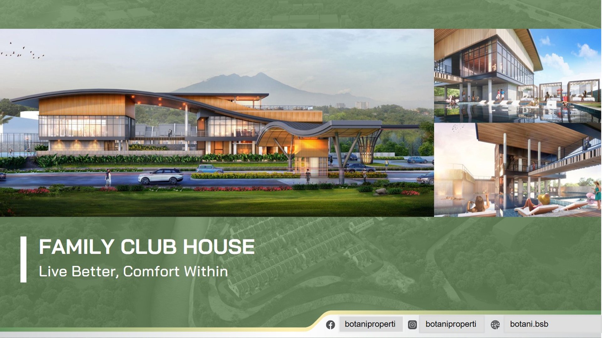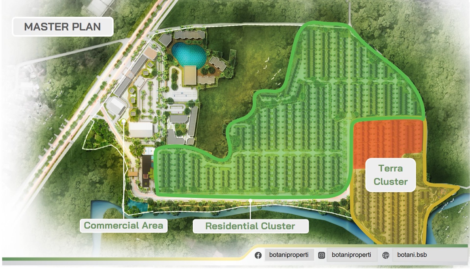 Terletak di lembah sungai berlatar belakang pegunungan, kawasan seluas 22 Ha ini menawarkan hunian bernuansa resort untuk kehidupan yang lebih baik, nyaman, sehat dan berwawasan lingkungan